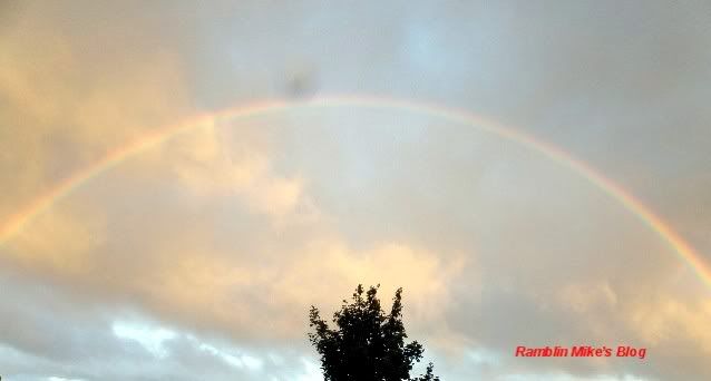 Shooting a rainbow is like shooting clouds, sunsets and sunrises. You have to be in the right place at the right time and have your camera ready. Things change very quickly. Mother nature isn't going to wait for you to get set up. I had an 8 AM dr. appt., otherwise I would have been gone and missed everything. I just happened to look out the window at the right time. I've seen lots of partial rainbows, but I can't recall seeing a full rainbow or a rainbow with the colors as brilliant as they were. The photos on my monitor don't do it justice.