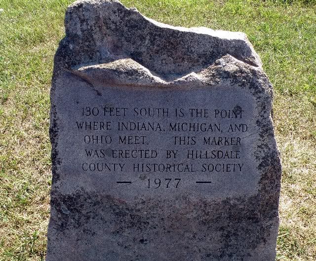 This is the spot!! The is the pin that separates three states. The upper half of the photo is Indiana. The lower right quarter is Michigan. The lower left quarter is Ohio. Sends shivers down the spine doesn't it ? ? ? ?