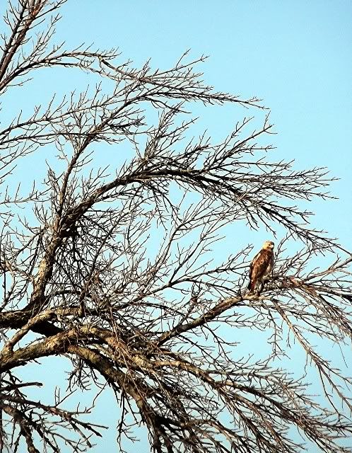 A hawk has been hangin around the dead Ash trees on 13. Got a shot of him last week. Wish I would have had my good camera with me that day. It has a larger zoom than my pocket camera.
