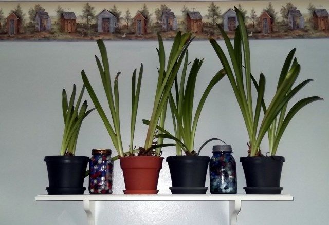 Nothing much has happened since my last blog post . . . except my budding amaryllis. A couple of them have budded this past week and will be blooming soon. I have them on a high shelf in the bathroom. In the past I've had them on a window shelf in the living room. I moved them because I'm thinkin my orange tabby cat, Simon would knock them off the shelf.