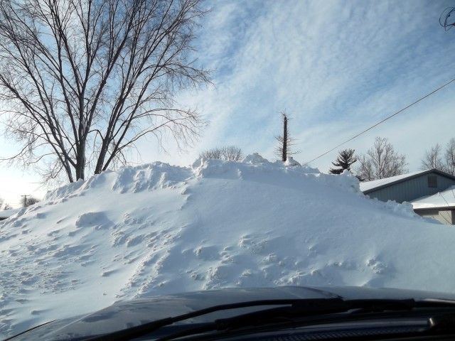 Snow is piled high everywhere. This one is a lot higher than it seems in the picture.